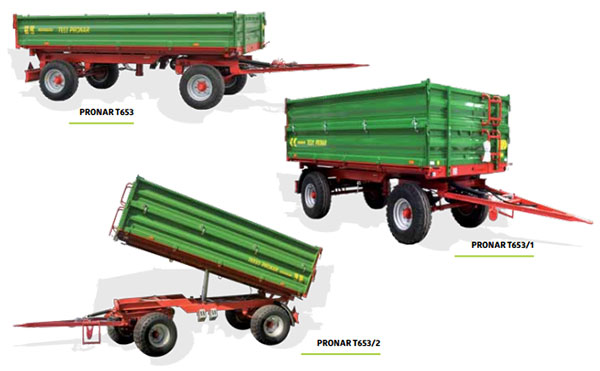 Прицепы PRONAR T653, T653/1, T653/2 были произведены и модернизированы на протяжении нескольких лет. Благодаря двухосной подвеске отлично подходят для использования при транспортировке как сельскохозяйственных, так и коммунальных материалов.