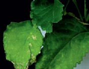 - пожелтение листьев, которое начинается с краёв, ткани возле жилок остаются зелёными, затем постепенно желтеют.