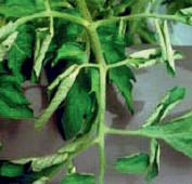 - у томатов листья выглядят вялыми, закручиваются внутрь в трубочку, белеют на кончиках, молодые листья мельчают, приобретают сине-зеленый оттенок