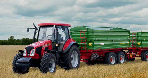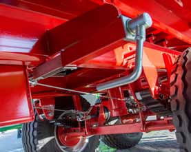 Использование ходовой системы тандем обеспечивает высокую маневренность прицепа, а благодаря нагрузке на петлю дышла от 1465 кг в T663/2 до 2000 кг в T663/4 улучшаются ходовые возможности трактора. Данное решение отлично оправдывается в тяжёлых полевых условиях. Специально разработанное дышло крепится сварочным швом к нижней раме и обладает возможностью адаптации к нему различных сцепных тяг и регулировки их по высоте в диапазоне от 354 мм до 938 мм, что позволяет агрегировать прицеп с нижним или верхним сцепным устройством трактора. Кроме того, благодаря возможности выбора типа подвески, в которой могут быть применены два типа рессор, можно изменить высоту прицепа.