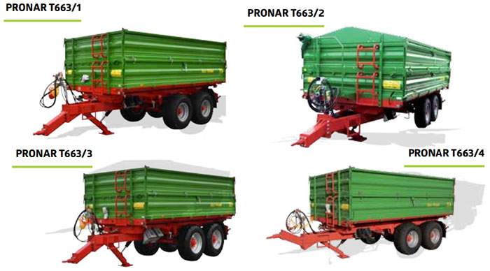 - Цвет покраски шасси красный RAL3000 PRONAR; бортов зелёный RAL6010 PRONAR.