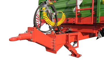 | Ссыпной люк с блокировкой | Универсальное дышло для соединения с нижним либо верхним тягово-сцепным устройством трактора с кронштейном для проводов и гидравлической ножничной опорой дышла. |