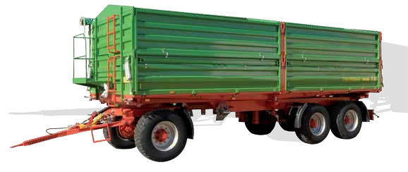 - Гидравлическая система опрокидывания с автоматическим запорным клапаном, ограничивающим опрокидывание, с защитными тросами и с выводами к второму прицепу.