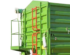 | Кузов с усиленным полом приспособлен к транспортировке европоддонов, внутренняя лестница | Два цилиндра трехстороннего опрокидывания - назад 47*, в сторону 45* | Лестница и балкон на передней стенке облегчают доступ к кузову и обслуживание тента |