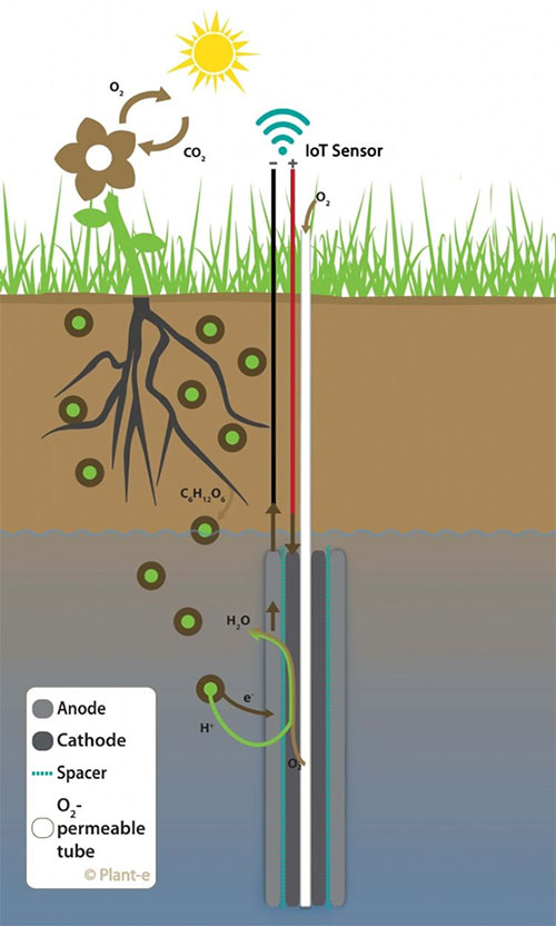 Компания Plant-e представила безбатарейный датчик влажности почвы, который получает энергию от травы, на премию Grass Innovation Award. Производство электроэнергии с помощью живых растений является уникальным в мире и единственной энергетической технологией, которая сохраняет CO2 во время производства.