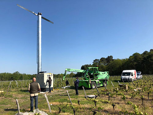 В течение дня почва поглощает солнечное тепло и нагревается, а с наступлением вечера наблюдается обратное явление, и ночью она высвобождает накопленное тепло в атмосферу. Наибольшие потери тепла происходят на рассвете, и именно тогда обморожение наиболее опасно с точки зрения окраски плодовых деревьев и виноградников. Ночное выделение тепла способствует формированию перевернутого теплого слоя воздуха, обычно расположенного на высоте от 10 до 50 метров над землей. Именно этот слой используют ветрогенераторы. Во время работы лопасти, расположенные под углом шести градусов к оси вращения, выпускают теплый воздух из верхних слоев воздуха к растениям , эффективно защищая их от весенних заморозков.