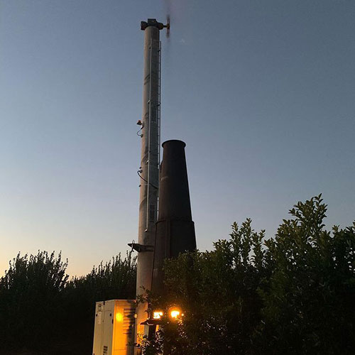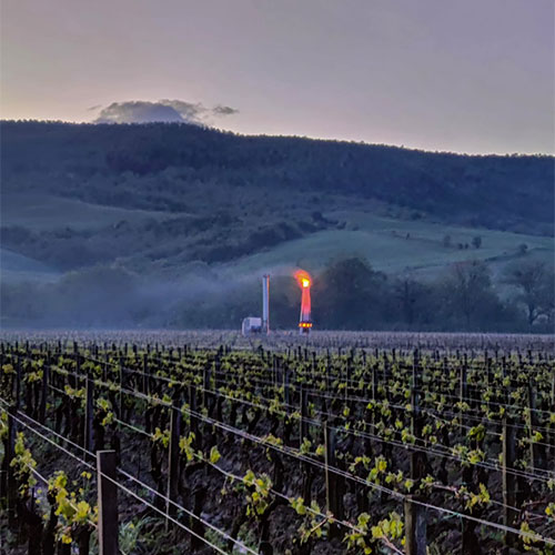 Вентиляторы для защиты от заморозков стали центральным элементом большинства стратегий защиты от заморозков. Они используют более теплый воздух в инверсионном слое для защиты урожая от повреждений, вызванных заморозками. Лопасти вентилятора слегка наклонены вниз, чтобы опустить этот инверсионный слой до уровня земли и защитить урожай от повреждений, вызванных заморозками.